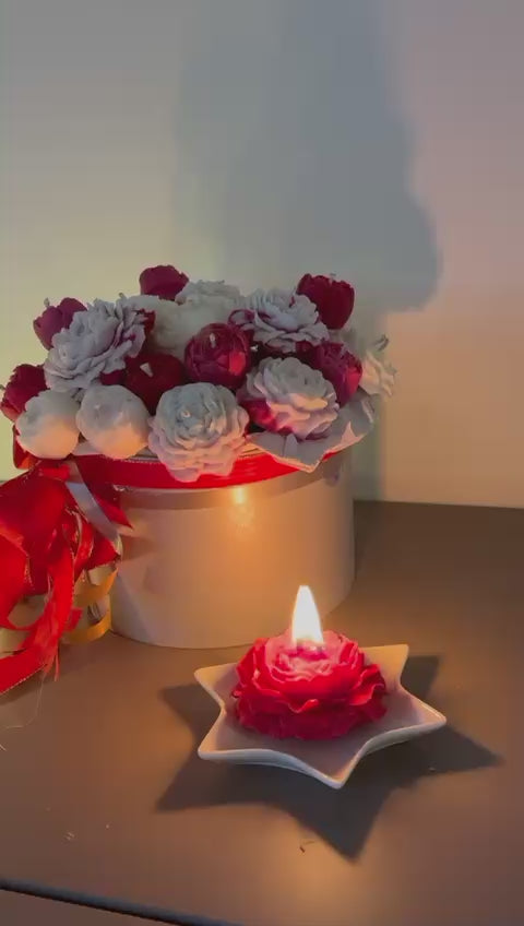 Ogni fiore è una candela di dimensioni medie o grandi, da accendere singolarmente o lasciare come preziosa decorazione.