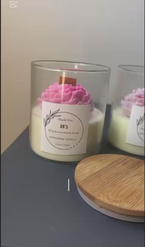 ⚠️ Nota sulla foto: nella foto principale sono visibili entrambe le varianti, ma questo prodotto è solo la candela con fiore rosa.